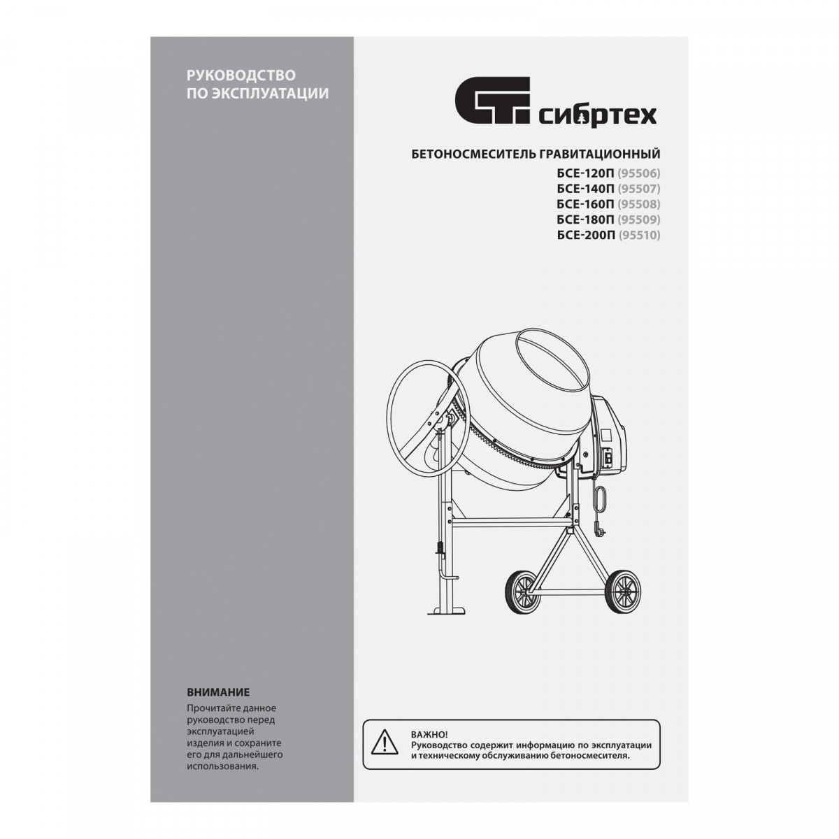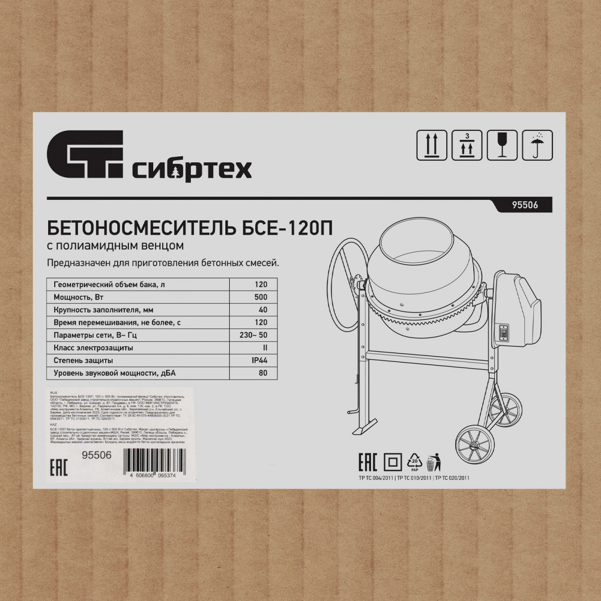Бетоносмеситель БСЕ-120П, 120 л, 500 Вт, полиамидный венец Сибртех