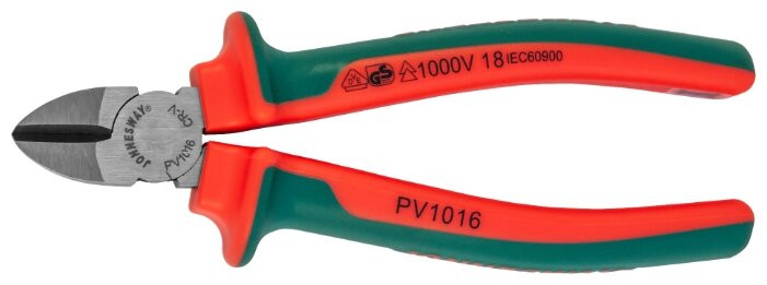 Бокорезы диэлектрические JONNESWAY PV1016 диэлектрически, 160 мм. Кусачки представляют собой одну из наиболее распространенных и конструктивно простых типов шарнирно-губцевого инструмента, различающихся, прежде всего, областью применения, отражающейся на геометрии режущих кромок и способом исполнения изделий.