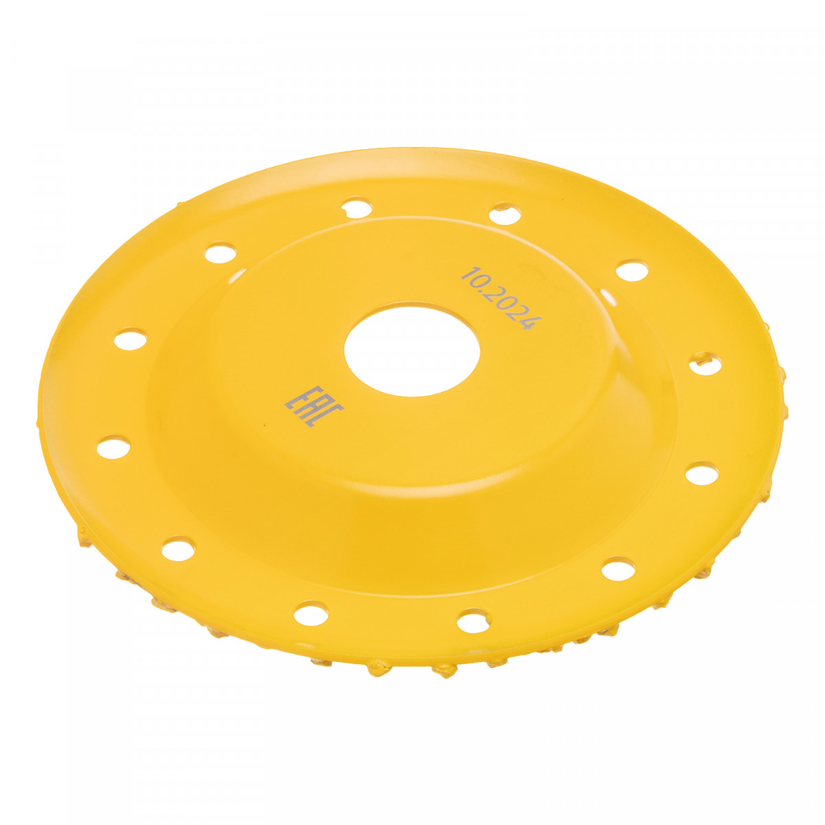 Твердосплавная зачистная чашка Denzel 72976 диаметром 125 мм, с крупным зерном P8 и наклонной рабочей частью, устанавливается на углошлифовальную машину (УШМ) и используется для грубой обработки деревянных, пластиковых, резиновых, газобетонных и кирпичных поверхностей. Позволяет устранить неровности, снять слой старой краски, клея, цемента. В ходе обдирочных работ не образуется абразивная пыль, что снижает вредное воздействие на здоровье пользователя. Наклонная рабочая часть упрощает обработку деталей сложной формы. Облегченный корпус позволяет избежать излишней нагрузки на УШМ и преждевременного выхода инструмента из строя.