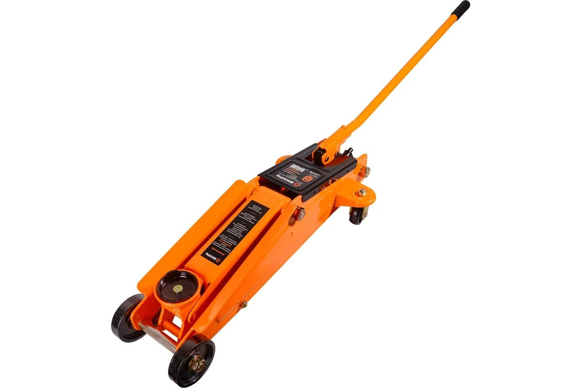 Гидравлический подкатной домкрат предназначен для поднятия транспортных средств весом до 3 т. Используется в процессе ремонта и шиномонтажа личного автомобиля и на СТО. Чтобы привести в действие гидравлический механизм, необходимо двигать рычаг. Длина рукоятки составляет 610 мм. Она является съемной, обеспечивая компактность при хранении и перевозке. Подъем автомобиля не требует больших усилий, домкрат позволяет работать в одиночку.Расстояние между поверхностью, на которой расположен инструмент, и его подхватом в нижнем положении составляет 135 мм. Высота подхвата соответствует дорожному просвету автомобиля от земли до точки касания с днищем. Максимальная высота подъема равна 435 мм, чего достаточно для удобной замены колеса.Подкатная конструкция подъемника весом 20 кг имеет вид низкой металлической тележки. Она оснащена 4 самонаправляющимися колесами для перемещения по ровной поверхности. Рабоч