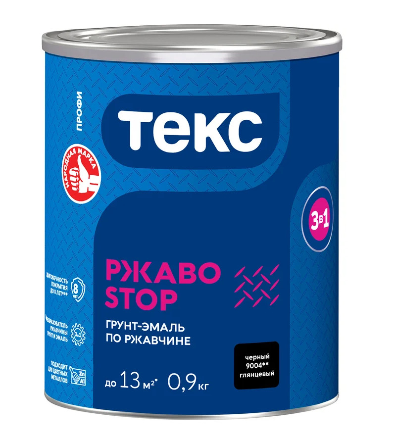 Грунт-эмаль 3в1 РЖАВОSTOP ПРОФИ черная глянцевая 0,9кг ТЕКС