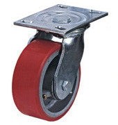 Колесные опоры большегрузные поворотные, полиуретановое покрытие, чугунный обод, платформенное крепление, роликоподшипник.