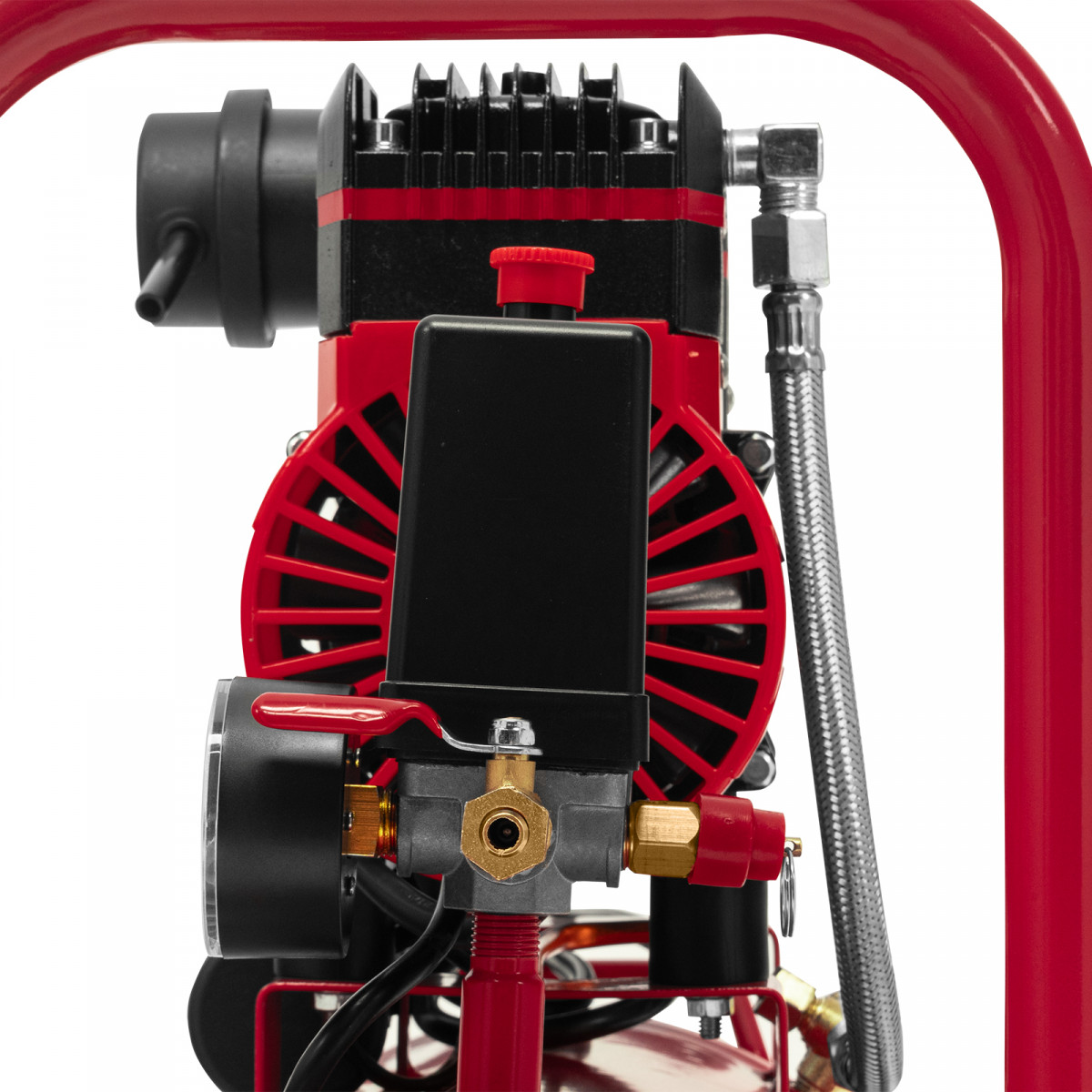 - Мобильность — благодаря транспортировочной рукоятке и колесам компрессор удобно перемещать по рабочей площадке.