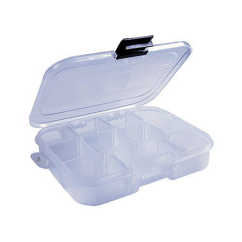 Небольшая односторонняя коробочка для хранения рыболовных мелочей с фиксированными перегородками.