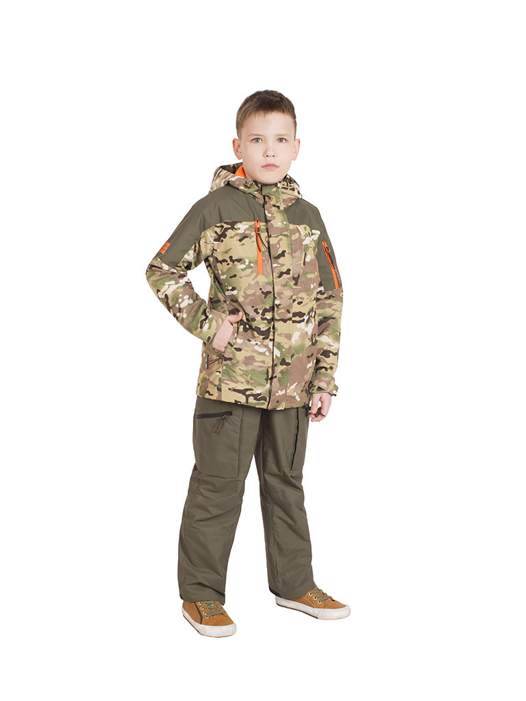 В верхней части правой полочки расположен прорезной карман с карабином-непотеряшкой, внутренний карман с левой стороны и карман на рукаве.