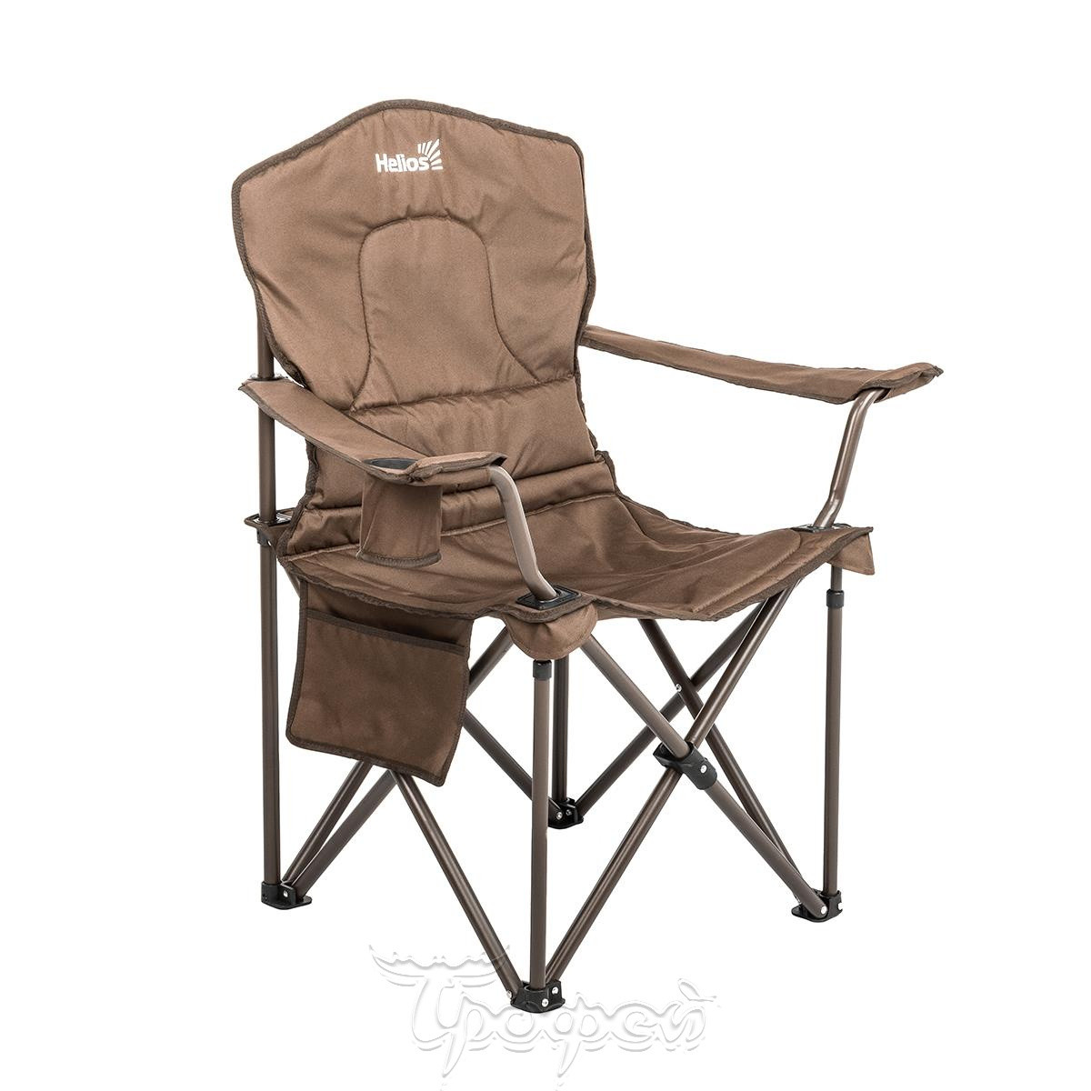 "Складное кресло Helios (PR-248) Premier даст возможность отдохнуть на природе с максимальным комфортом. Любители рыбалки, загородных пикников, а также дачники оценят достоинства красивой и удобной в использовании модели. Это кресло — самое «выносливое» в линейке. Грузоподъемность составляет 150 килограммов, поэтому оно подходит и людям крупной комплекции. Мягкая спинка объединена с сиденьем. Есть широкие подлокотники, в одном из которых имеется подстаканник. С правой стороны к сиденью пришит карман для мелких вещей. Ткань — износостойкий полиэстер, которому не страшны перепады температур воздуха, палящее солнце или проливной дождь. Синтетический материал легко чистится и быстро сохнет. Каркас кресла изготовлен из высококачественной стали. Порошковое покрытие усиливает устойчивость к ржавлению и механическим повреждениям. Пластиковые насадки на ножках исключают скольжение по поверхности. Кресло складывается и раскладывается без каких-либо усилий."