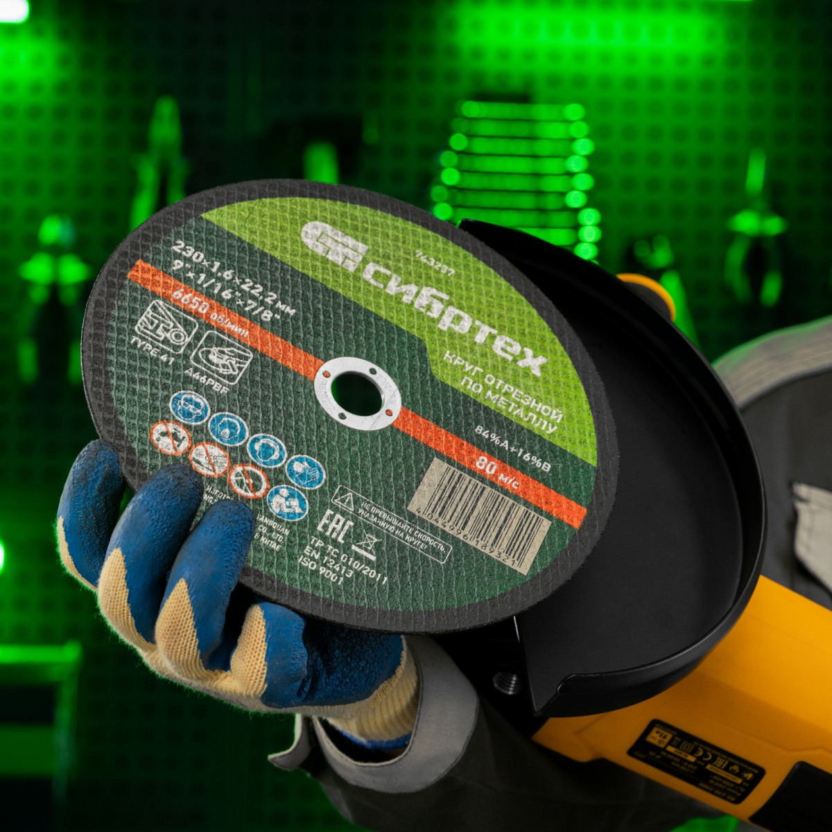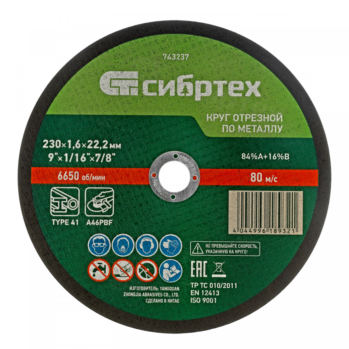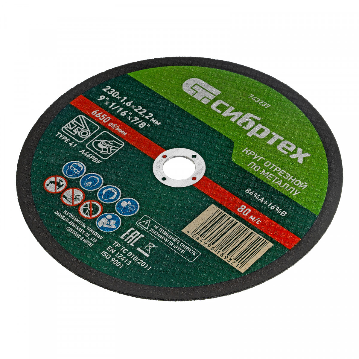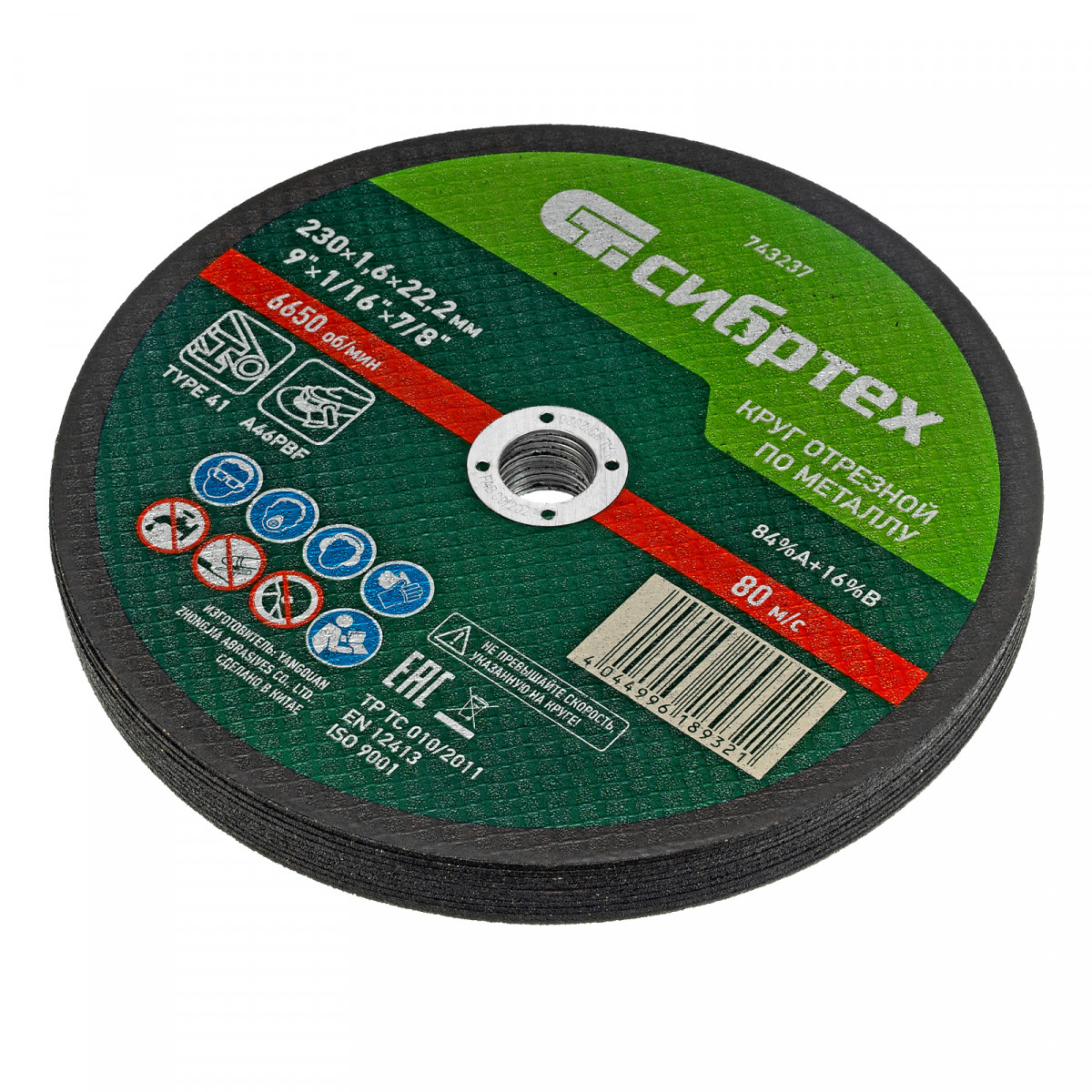 Круг отрезной по металлу, 230 х 1,6 х 22,2 мм, 84%A+16%B, в пленке, 10 шт Сибртех