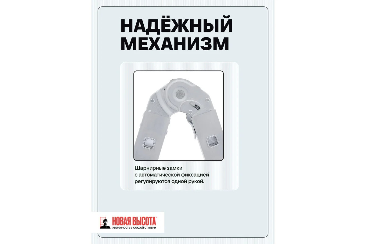 - Преимущества Новая Высота 4 рабочих положения; Лестница сделана из алюминиевого профиля - прочность и надежность;