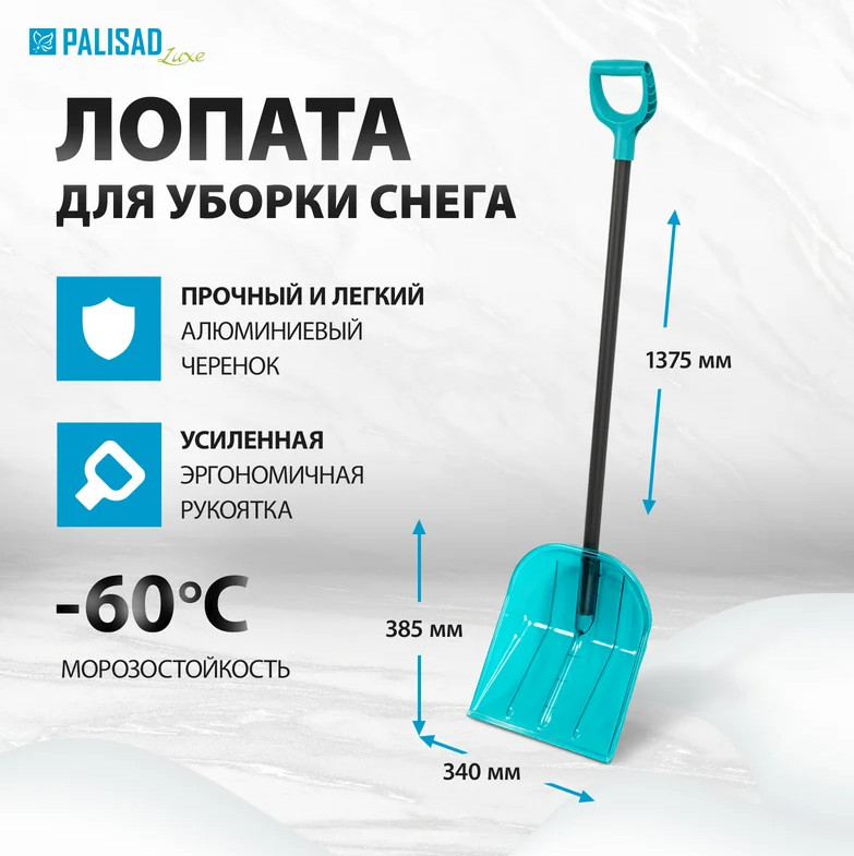 Лопата для уборки снега поликарбонат, 340х385х1340 мм, алюминиевый черенок, LUXE Palisad