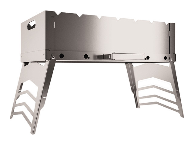 Мангал выполнен из высококачественной стали и трансформируется в чемоданчик. Он собирается всего за 30 секунд. Изделие оснащено выдвижной ручкой для переноски и имеет большую рабочую площадь.