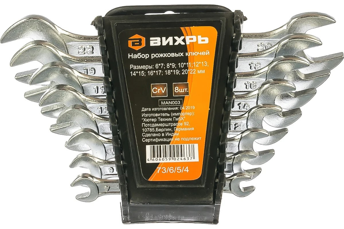 Набор накидных ключей Вихрь состоит из 8 штук с размерами от 6 до 17 мм: