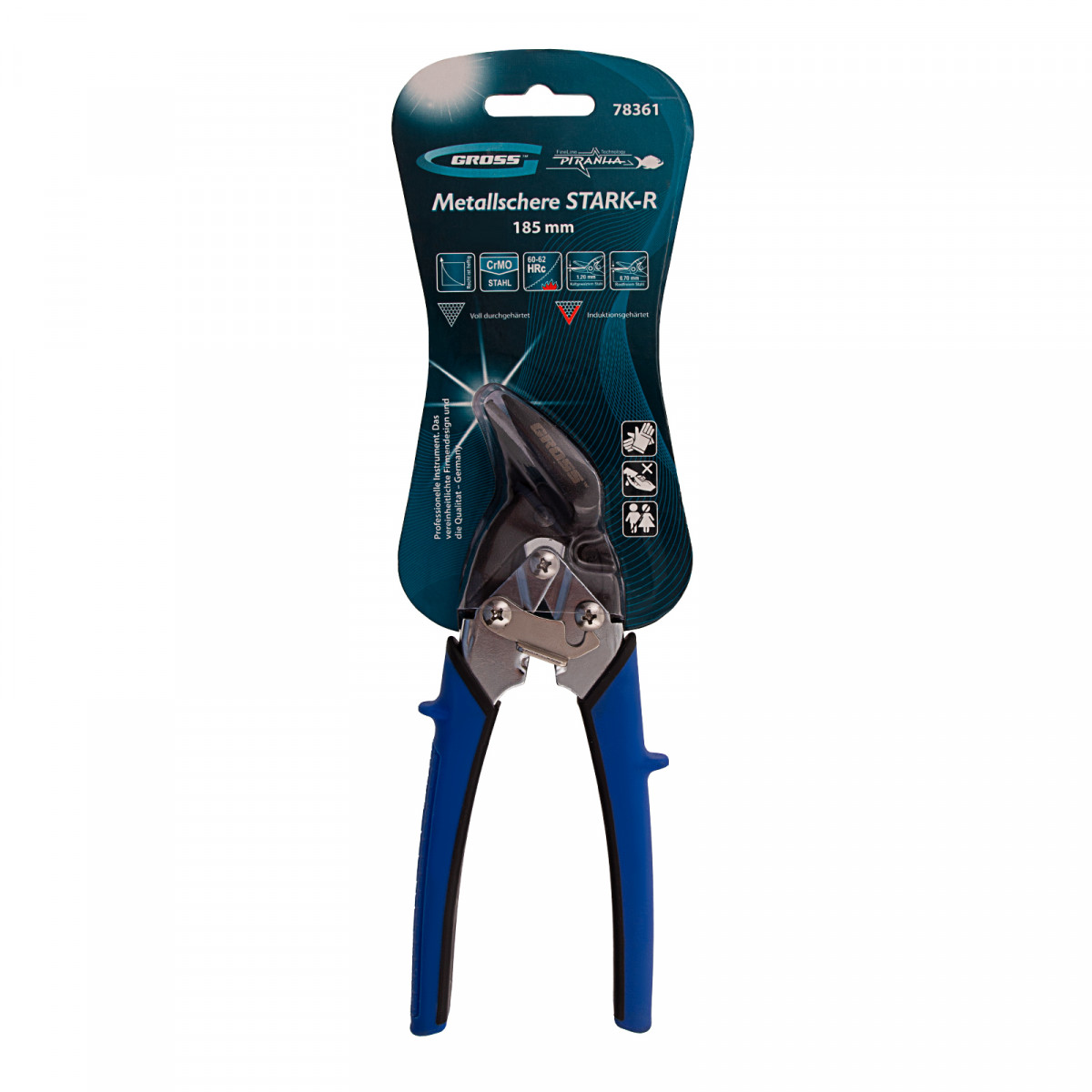 Ножницы по металлу "Piranha", 185 мм, прямой и правый рез, сталь СrM, двухкомпонентные рукоятки Gross