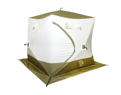 Палатка зимняя куб СЛЕДОПЫТ Premium Long 2,35х2,0 м S по полу 4,7 кв.м 3 слоя оливковый/белый