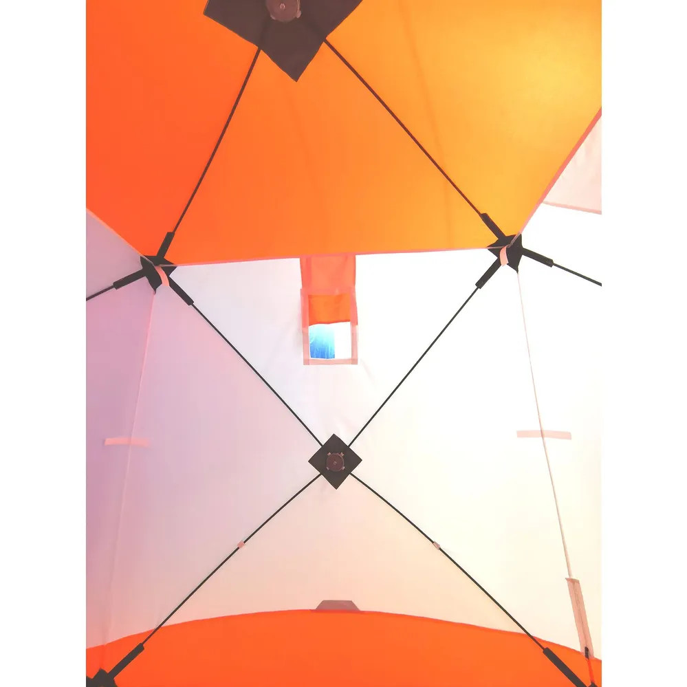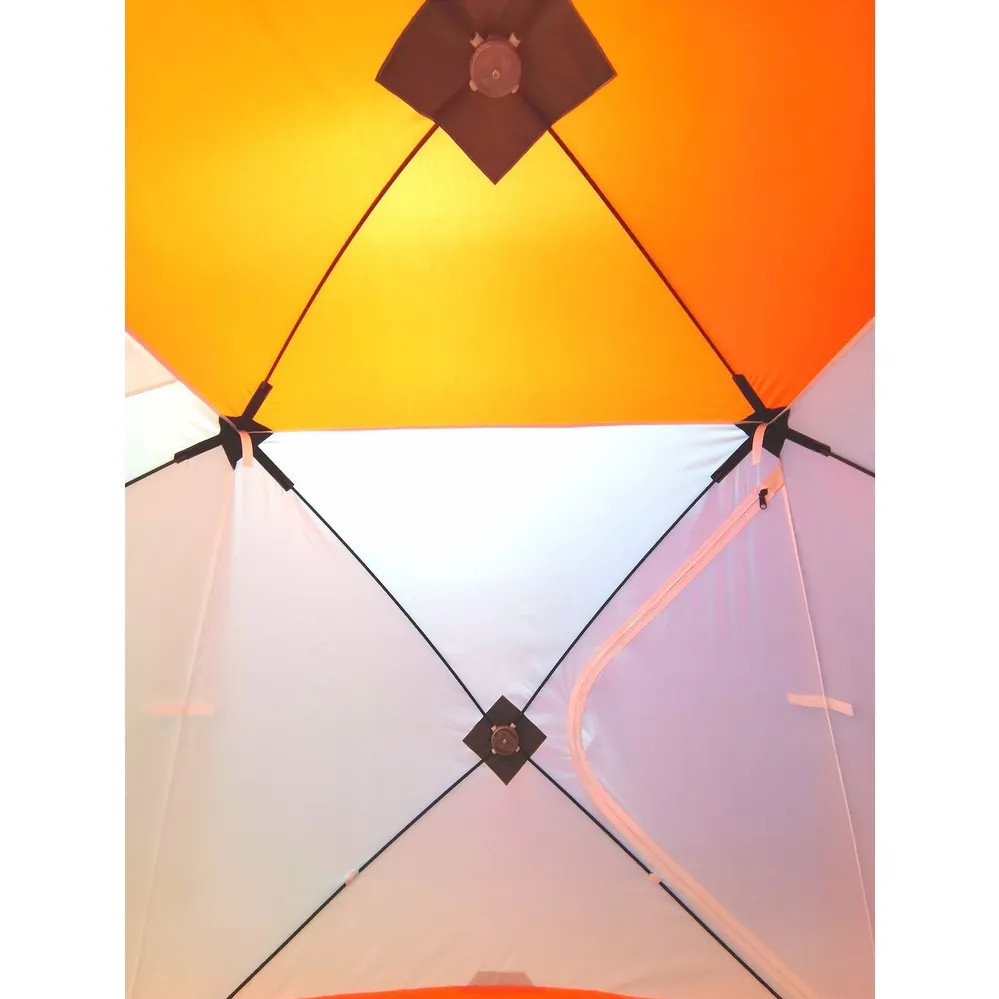 Данная модель обладает уникальным набором характеристик, позволяющим говорить о том, что и в эконом-классе есть возможность получить премиум-эффект. В первую очередь это специальная ткань для палаток Oxford Tent, высокая плотность плетения, пропитка PU 2000. Каркас из композитного материала и хаб из алюминиевого сплава. Дышащая вставка на боковой грани, данное расположение призвано исключить забивание снегом материала. Нашивки из широкой светоотражающей ленты обеспечат безопасность на льду. Два двухсторонних бегунка на молнии №10, большие и мощные слайдеры на специальной морозоустойчивой молнии. Вентиляционный рукав-клапан с утягивающей клипсой. Восемь оттяжек для крепления палатки – 4 на хабах и 4 на полу. Два вместительных кармана.