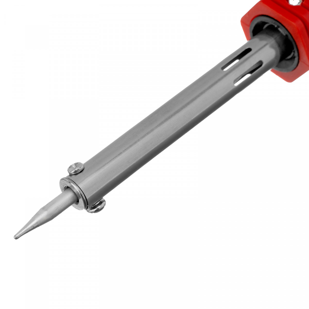 • Удобная эксплуатация — жало с медным сердечником быстро нагревается, при необходимости его можно заменить.