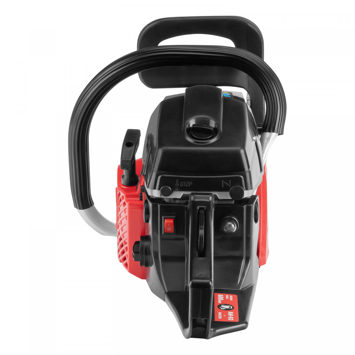 • Безопасная эксплуатация — функция блокировки газа предотвращает случайный запуск, тормоз цепи снижает риск травмирования при отскоке пилы.