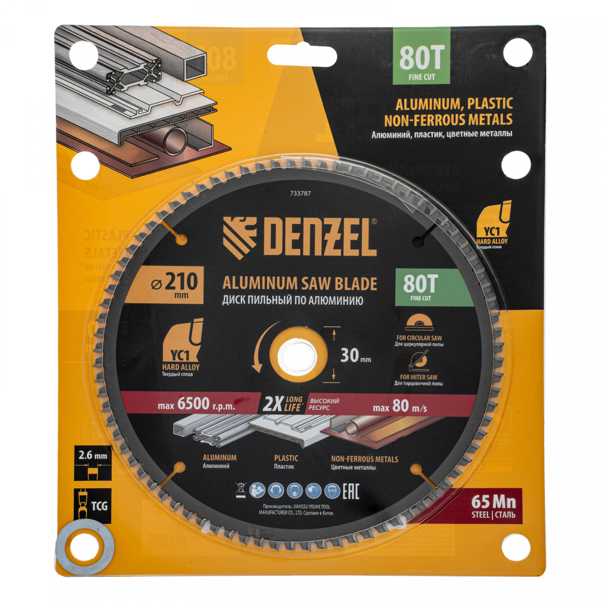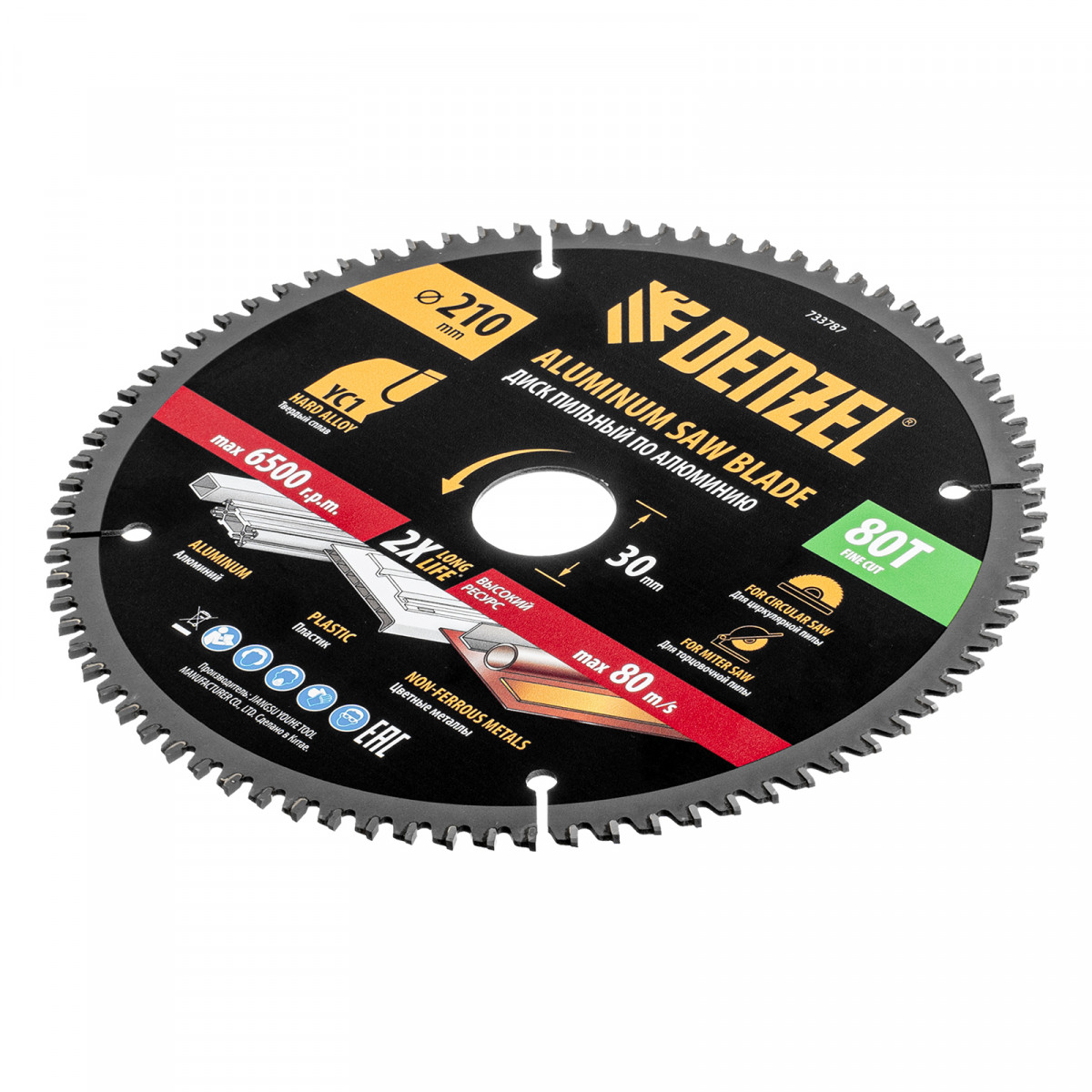 Пильный диск по алюминию ф210 х 30 мм, 80 зубьев Denzel