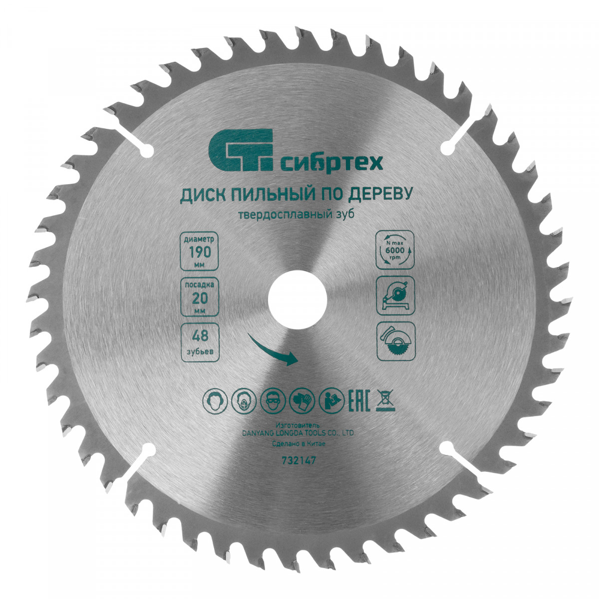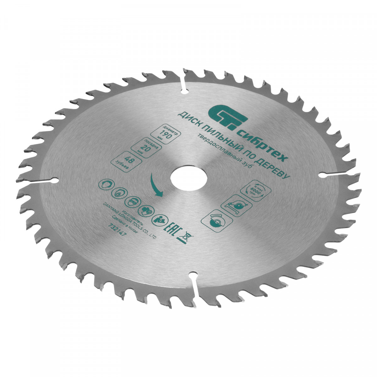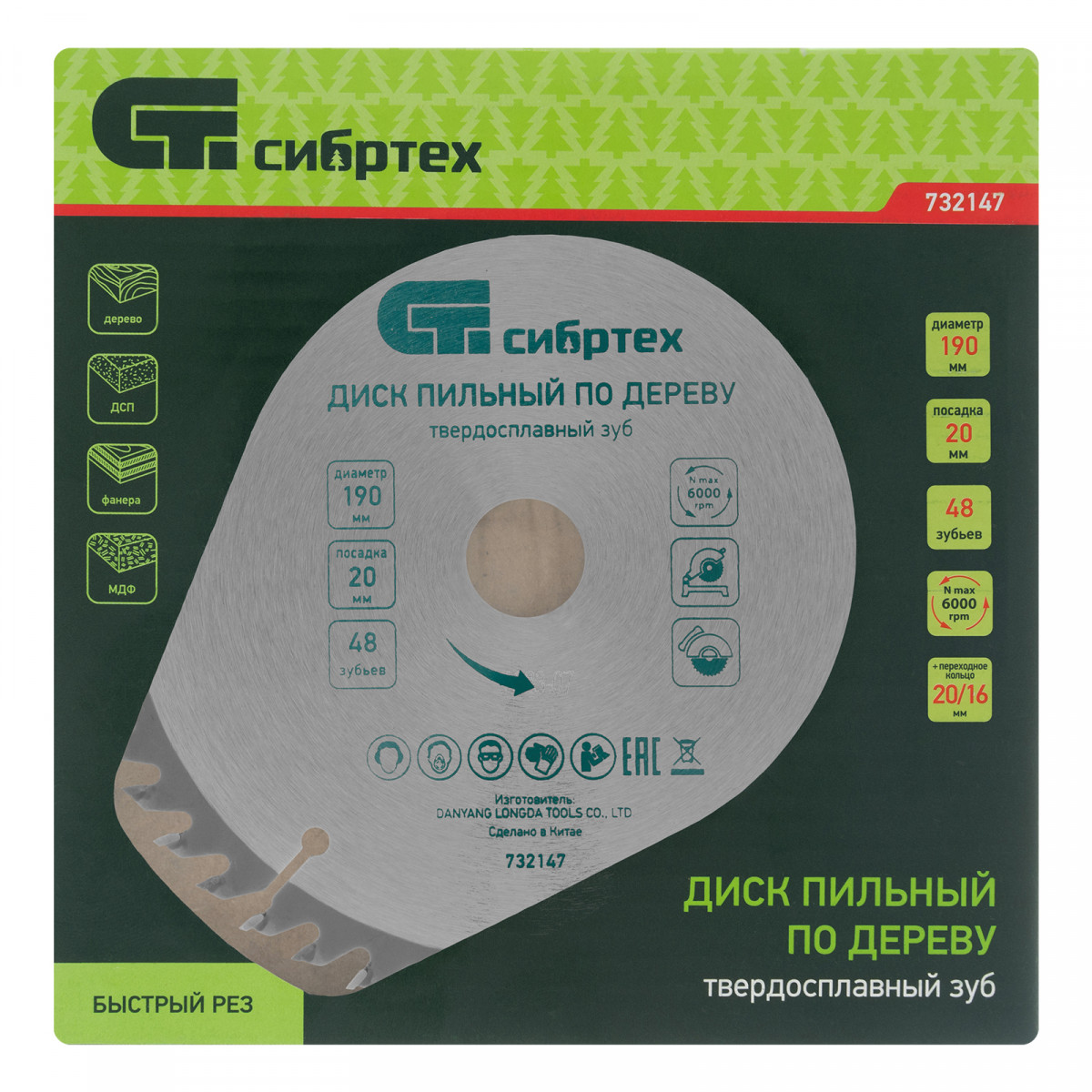Пильный диск по дереву, 190 х 20 мм, 48 зубьев, кольцо 16/20 Сибртех