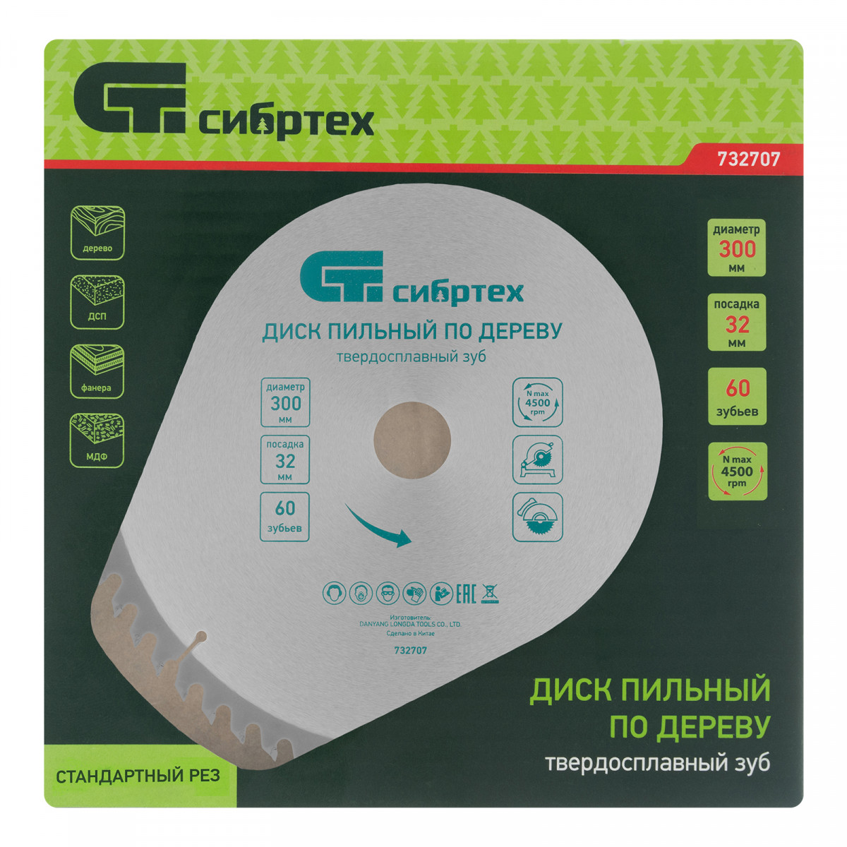 Пильный диск по дереву, 300 х 32 мм, 60 зубьев Сибртех