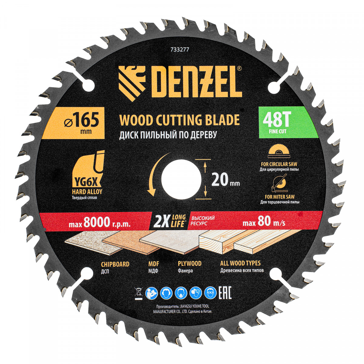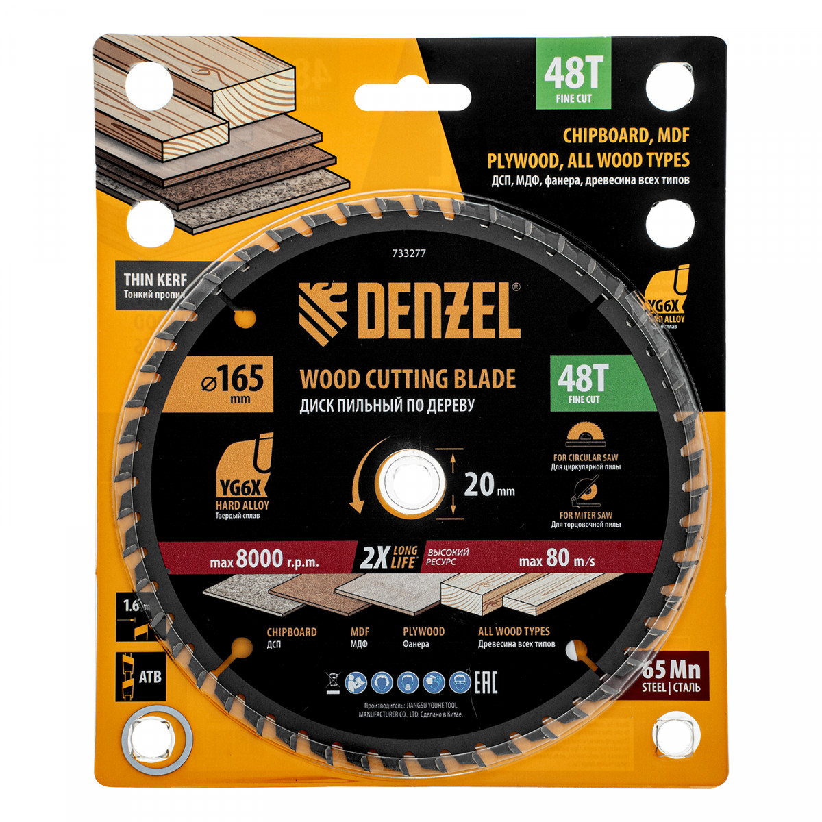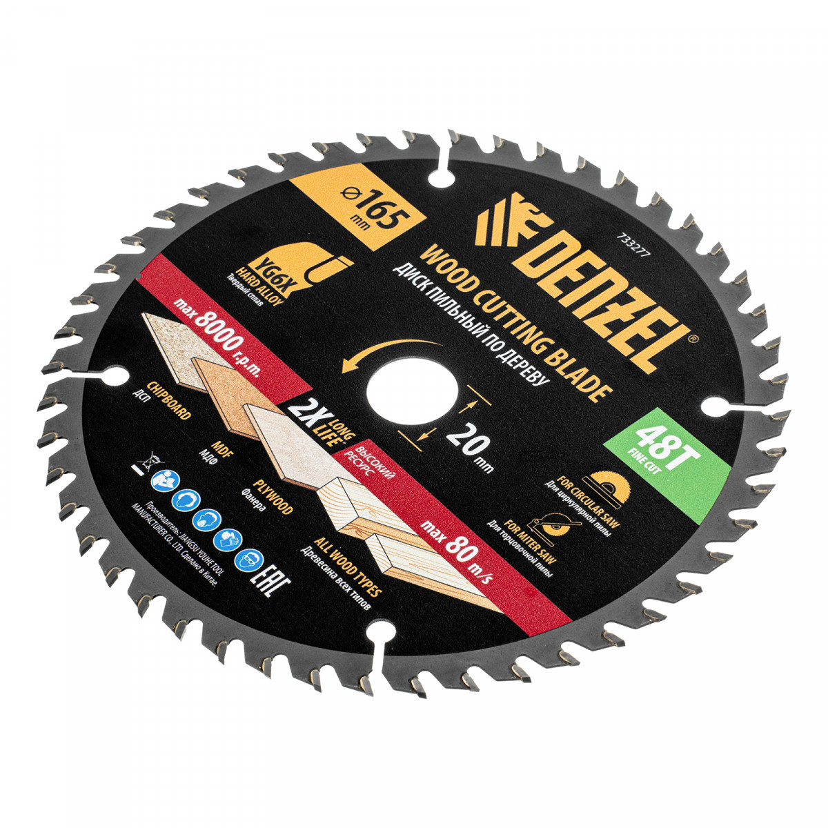 Пильный диск по дереву ф165 х 20 мм, 48 зубьев, тонкий Denzel