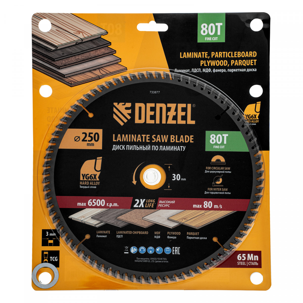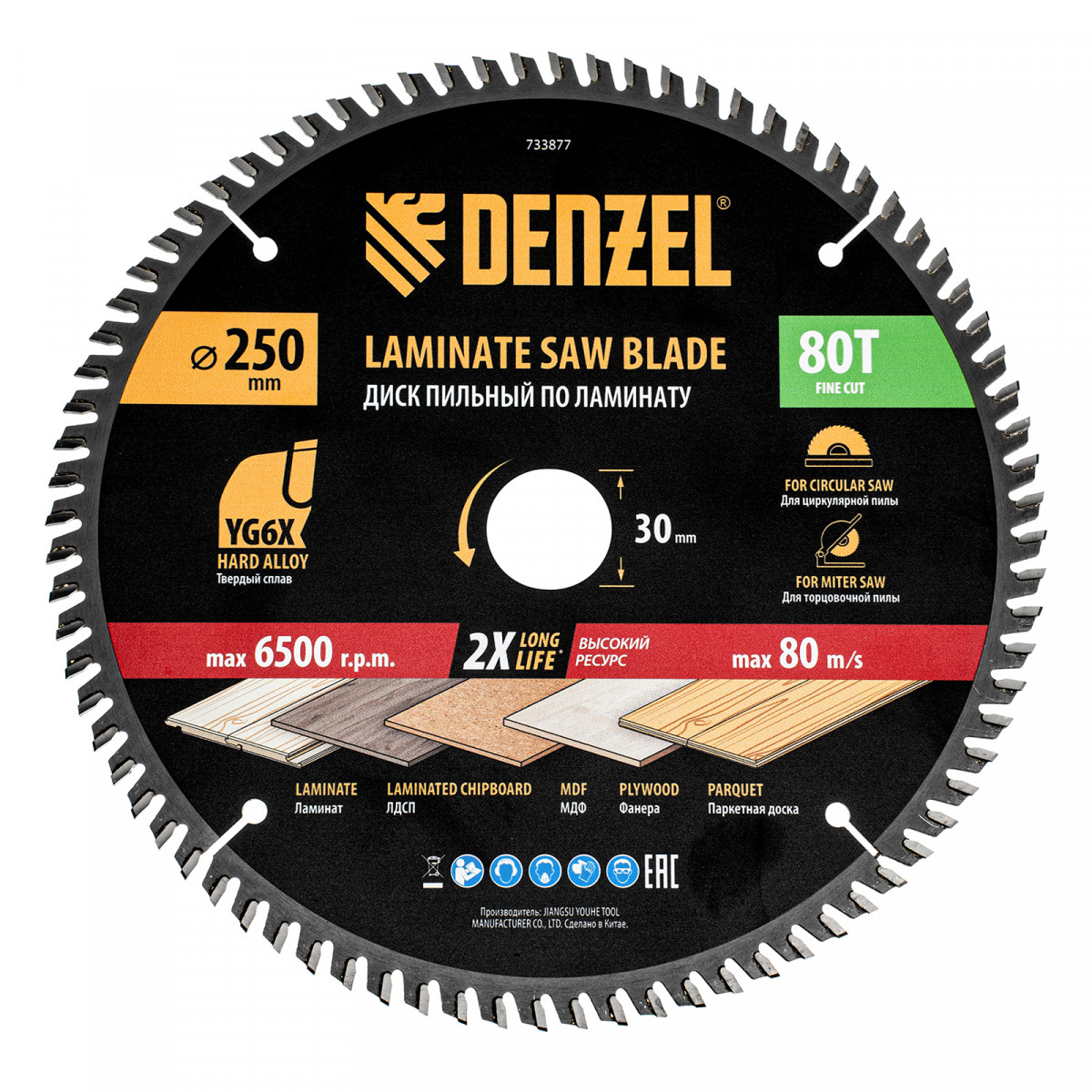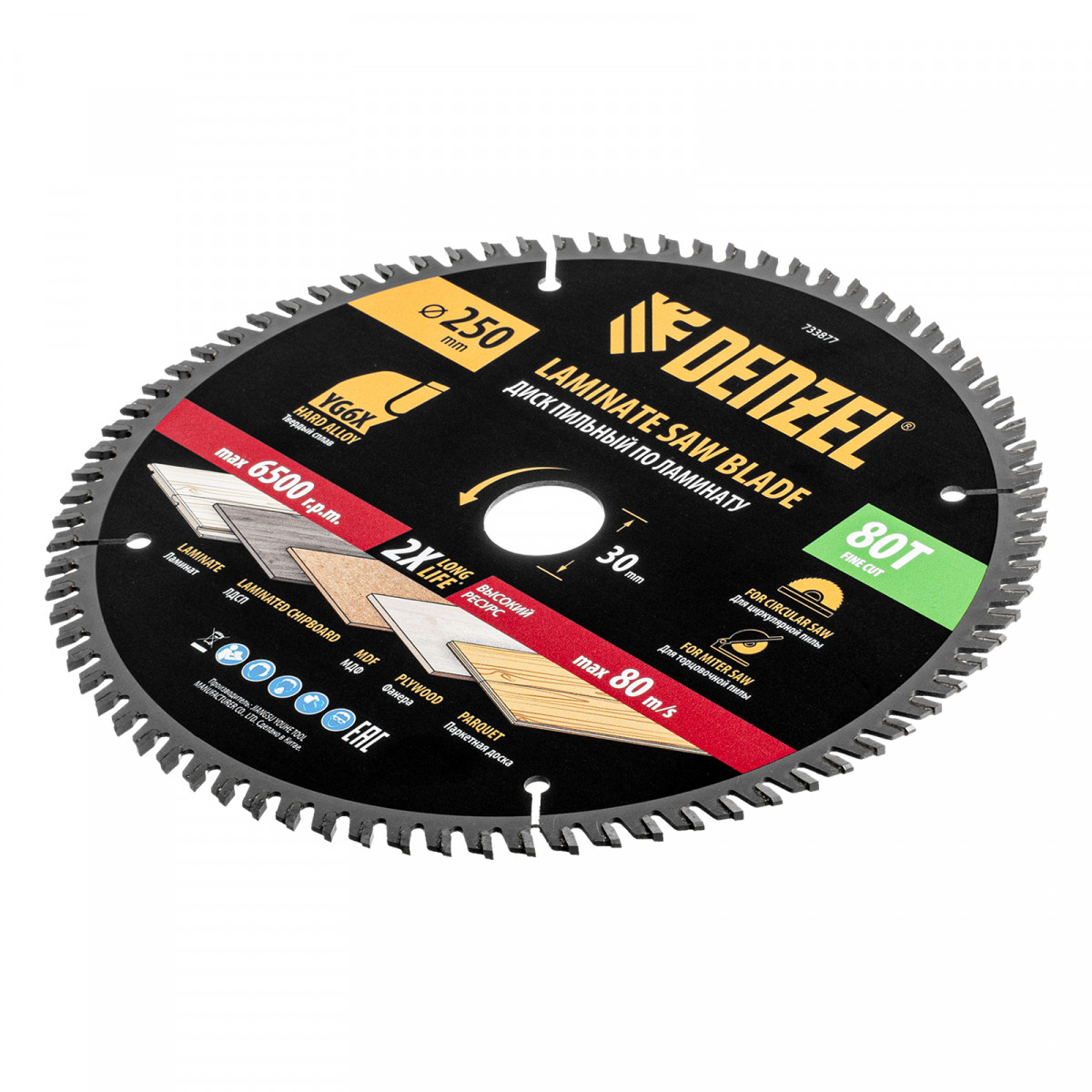 Пильный диск по ламинату ф250 х 30 мм, 80 зубьев Denzel