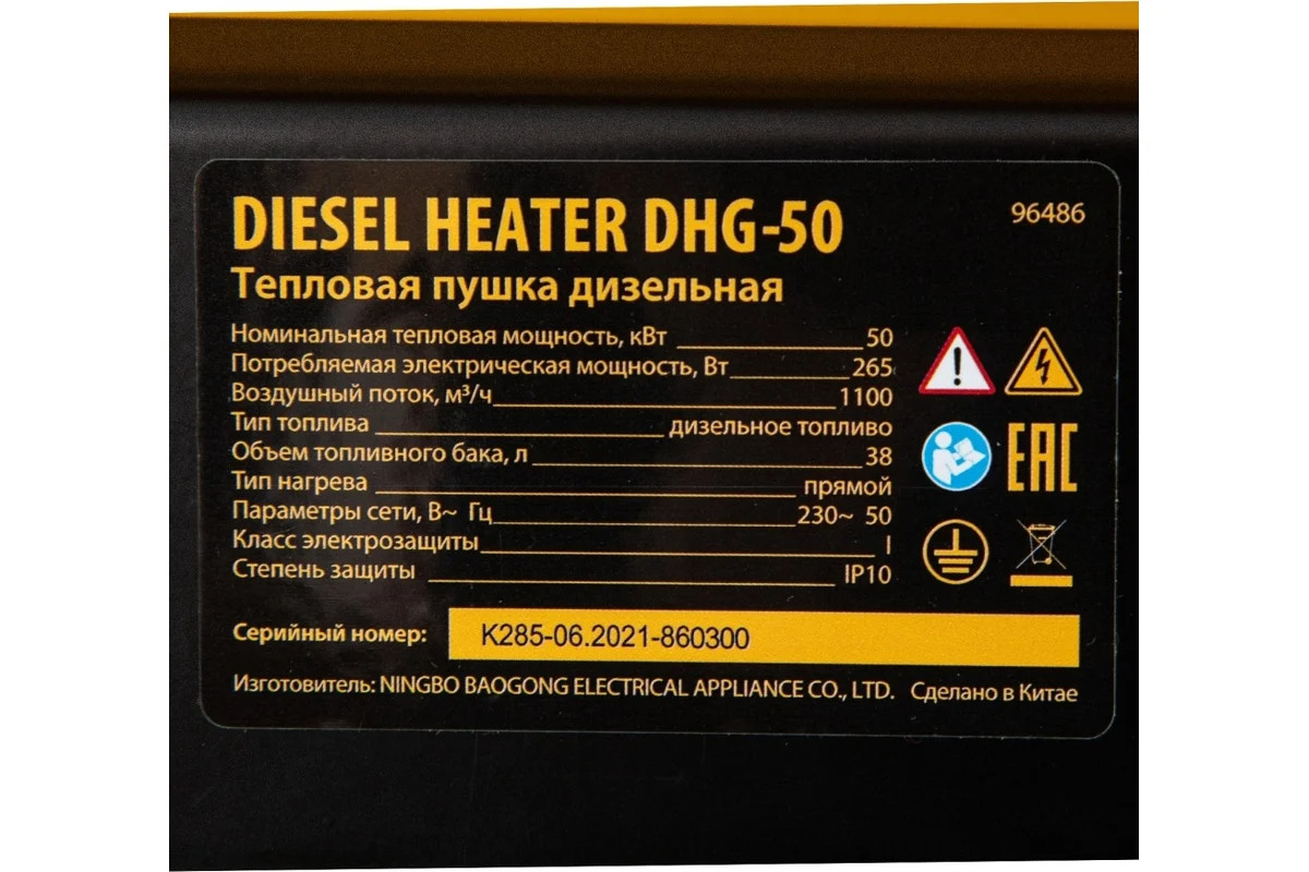 • Тепловая пушка Denzel DHG-50, 50 кВт, 1100 м3/ч, прямой нагрев 96486 имеет яркий дизайн.