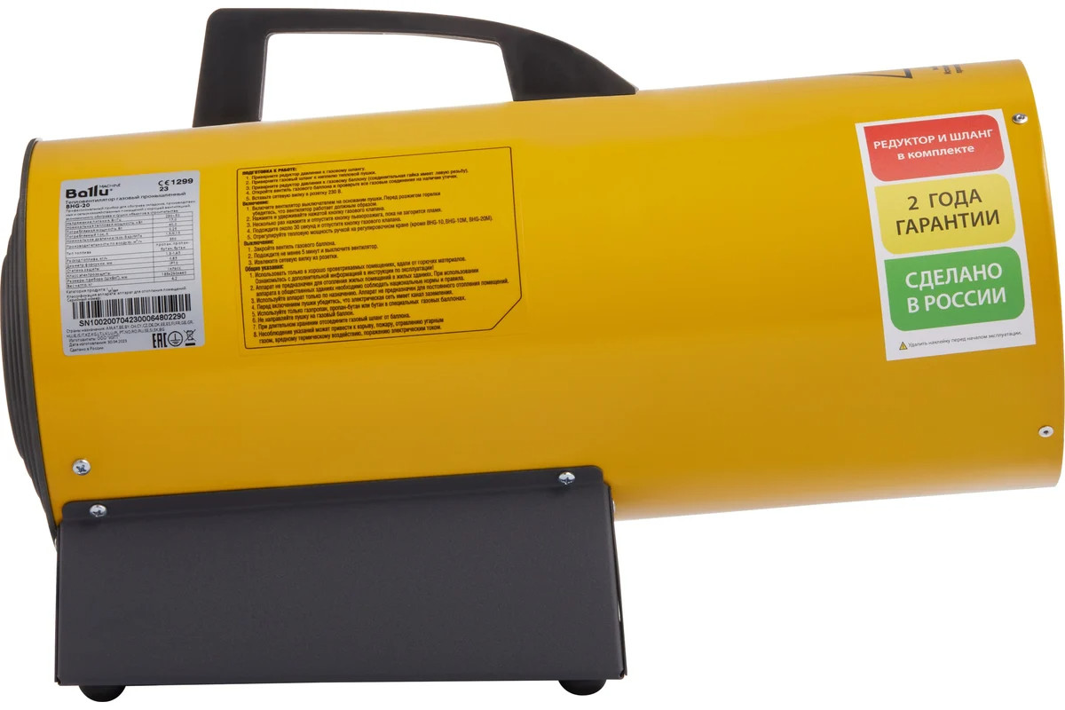 • Долговечное антикоррозийное покрытие корпуса газовой тепловой пушки Ballu BHG-60