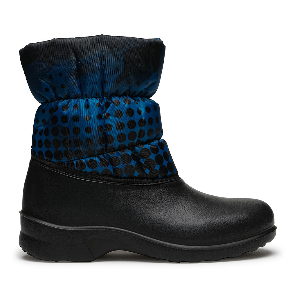 Полусапожки женские Дюна из зимней эластичной полимерной композиции EVA DU-Care. Верхняя часть выполнена из текстиля с водоотталкивающей пропиткой. Подкладка состоит из полиэфирного ворсового полотна, которое создаёт надёжный барьер для проникновения холодного воздуха. Воздушные пространства, которые образуются за счёт отстрочки с помощью резинки, создают барьер для проникновения холодного воздуха. Сноубутсы практичные, удобные и комфортные. Стильный авторский принт позволяет создать индивидуальный образ. Предназначены для повседневных прогулок в холодную погоду и для активного отдыха. Бережная стирка при температуре 30 градусов.