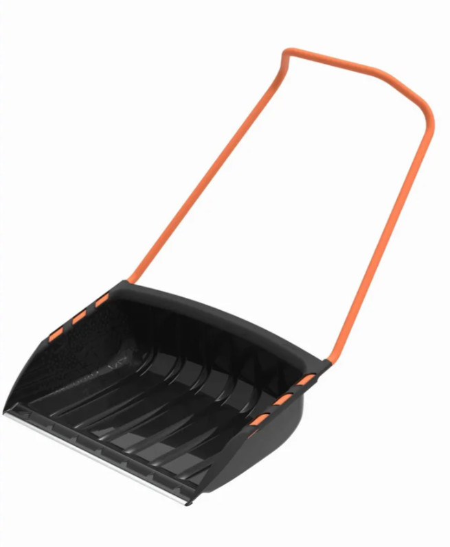 У него эргономичная стальная ручка, скрепер удобно толкать вперед.