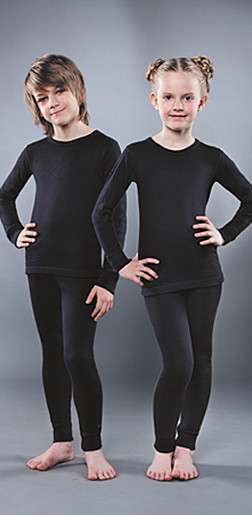 Термобелье детское, двухслойное, черное. Фуфайка-классик, кальсоны с ластовицей, низ на манжете.