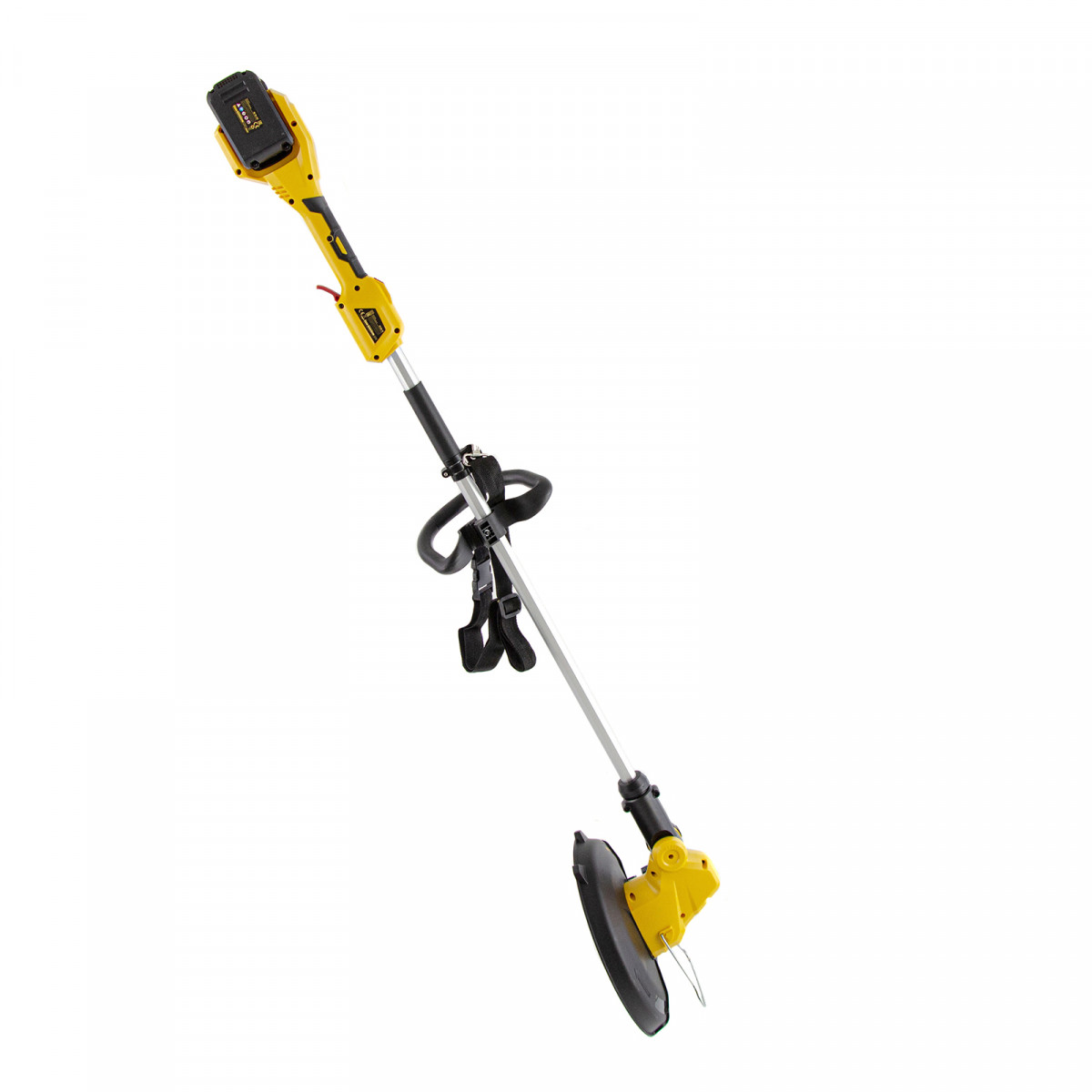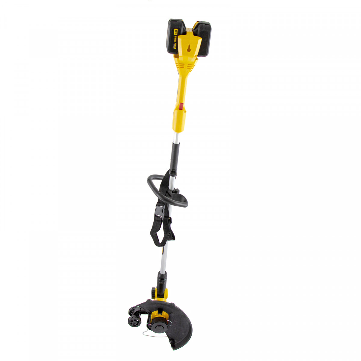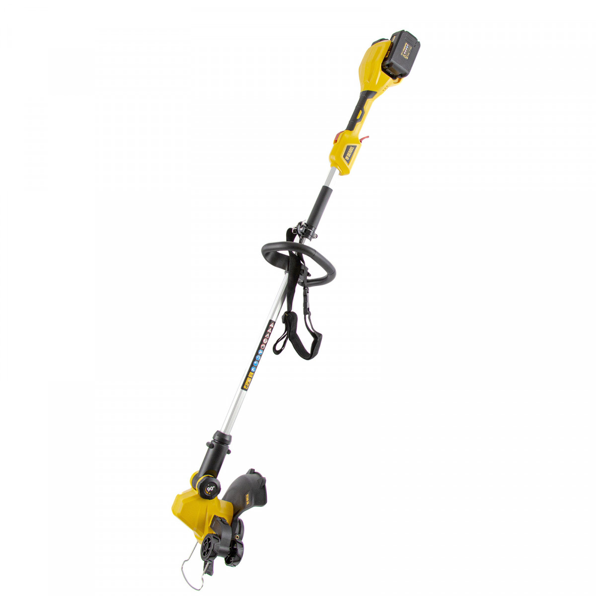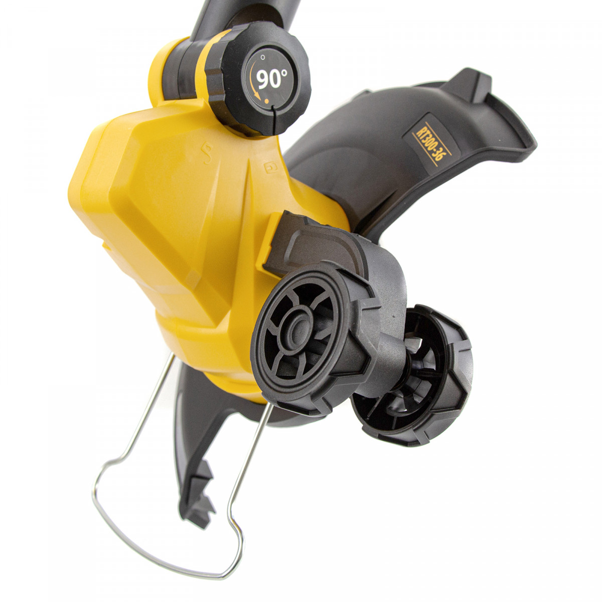 Триммер аккумуляторный Denzel RT300-36 58710 работает от батареи Li-Ion напряжением 36 В и емкостью 4 А·ч, обеспечивая ширину скашивания 300 мм. Предназначен для скашивания свежей травы, обработки границ газона, удаления растительности на небольших приусадебных участках. Выполняет поставленные задачи с помощью лески, совмещая функции триммера и кромкореза. Поворотная голова с расположенным в ней электродвигателем обеспечивает комфортную эксплуатацию в самых труднодоступных местах.,Триммер не требует использования топлива и подключения к сети электроснабжения. Он комплектуется двумя аккумуляторными батареями увеличенной емкости с интеллектуальной системой распознавания типа нагрузки.