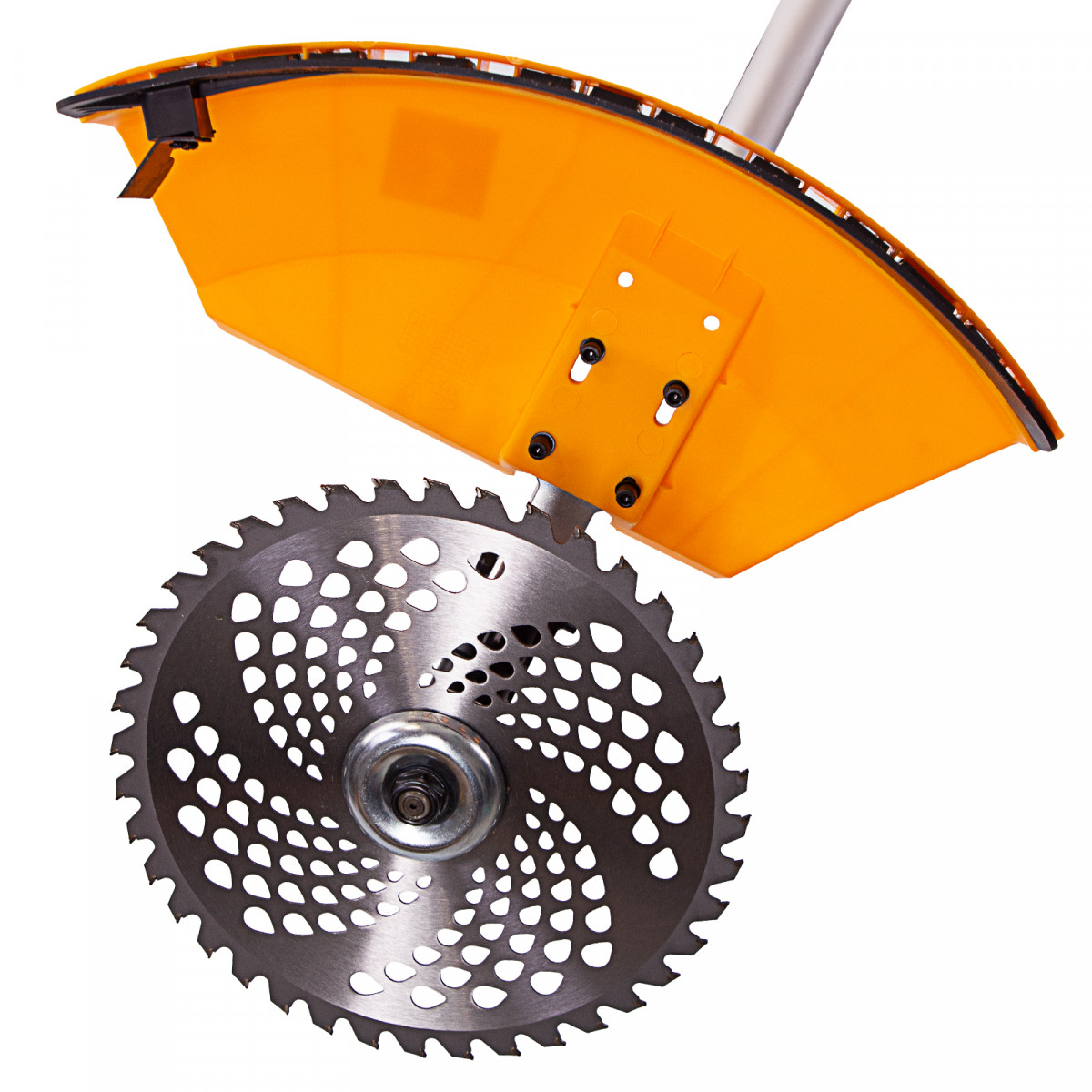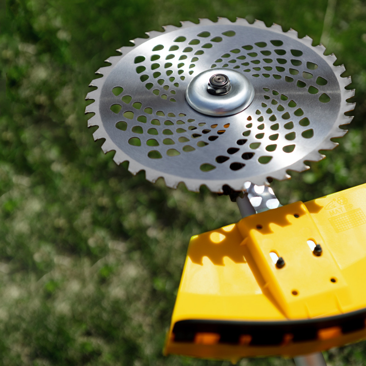 • Безопасность — пластиковый кожух защищает пользователя от вылетающей травы и мелких частиц.