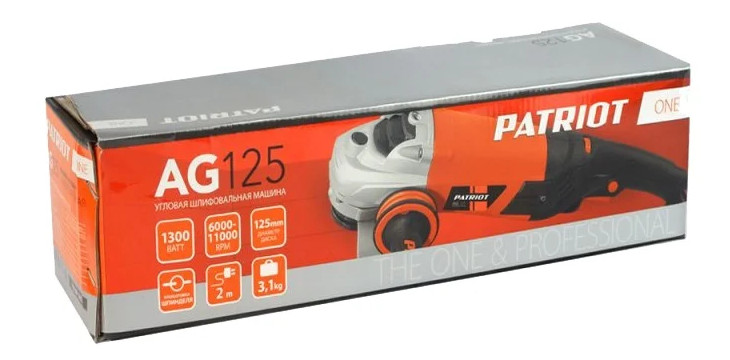 - Рукоятка с покрытием ExtraGrip - для комфортной работы углошлифовальной машиной PATRIOT AG125 110301215.