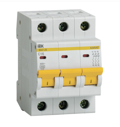 Выключатель автоматический 3P 16A 4,5кА характеристика C ВА47-29 IEK