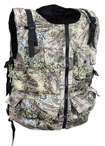 Безразмерный, разгрузочный жилет с центральной застежкой на молнию.